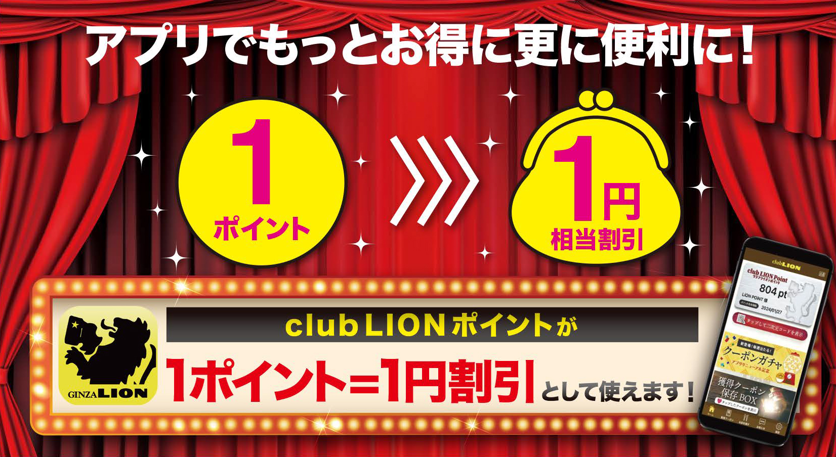 全国のサッポロライオン各店舗(一部店舗除く)でご利用できるポイントです。