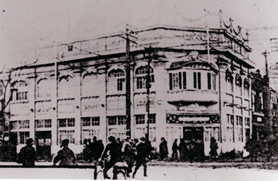 このビヤホールは、2階建ての煉瓦造りの建物の2階を間借りして開店したにも関わらず、当時有名だった小林習古画伯の壁画を飾るなどとても豪華な造りをした店舗だったため非常に繁盛しました。1日の来客数は平均800人に達しました。遠方から馬車でやってくる人もいたそうです。