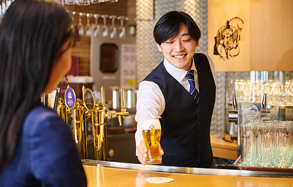 サッポロライオンは、「大事なことは本部が決めて、店舗はオペレーションするだけ」という会社ではありません。優れたアイデアは勤続年数に関係なく採用され、どんどんチャンスが与えられます。作業者でなく、経営者の集まりでありたいと考えます。あなたの個性と成長がお客様の喜びを生み、未来のサッポロライオンをつくっていくのです。